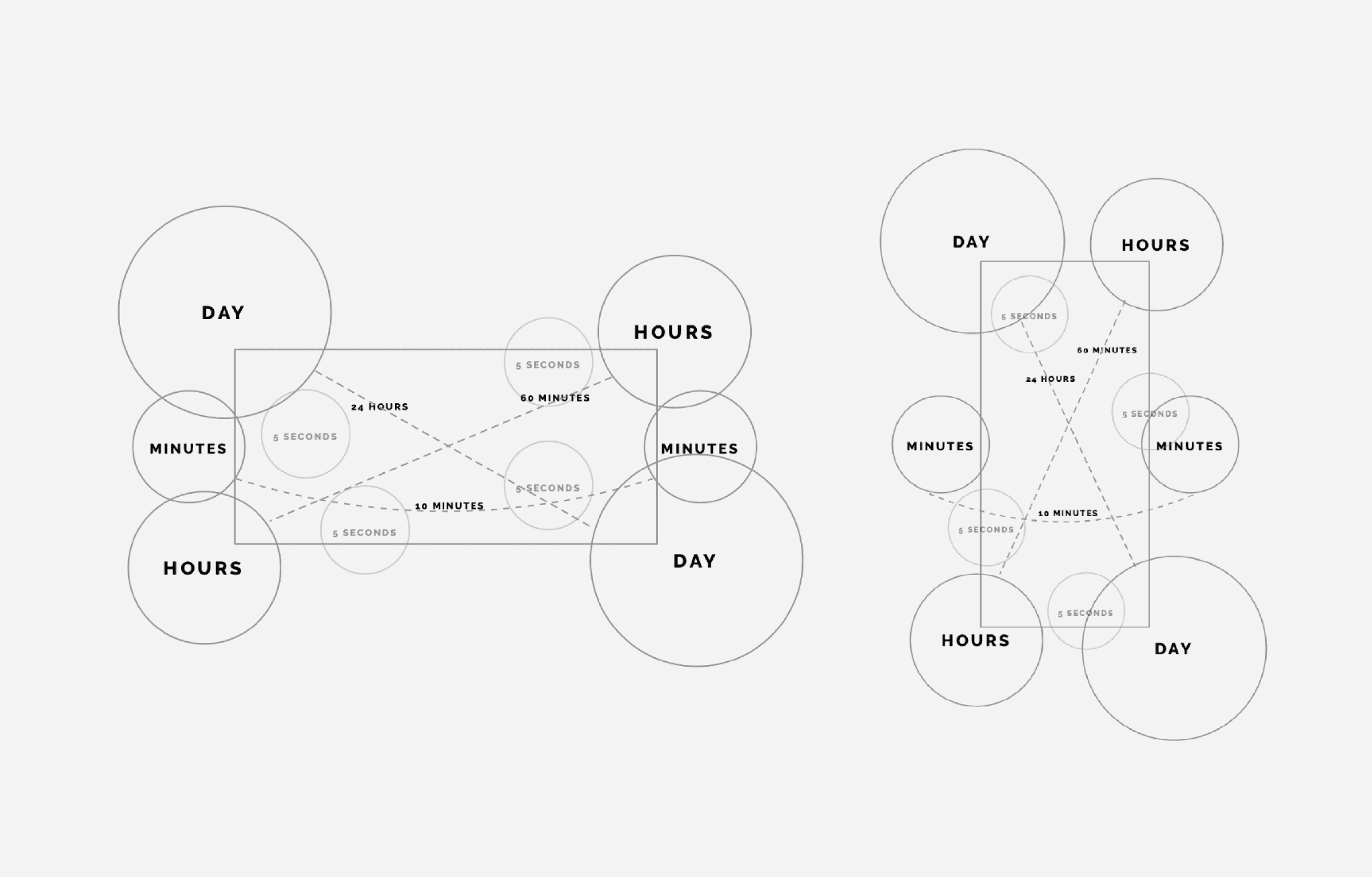 Seconds are symbolized by multiple smaller circles that pulsate every five seconds, providing a more soothing rhythm compared to updating every second.